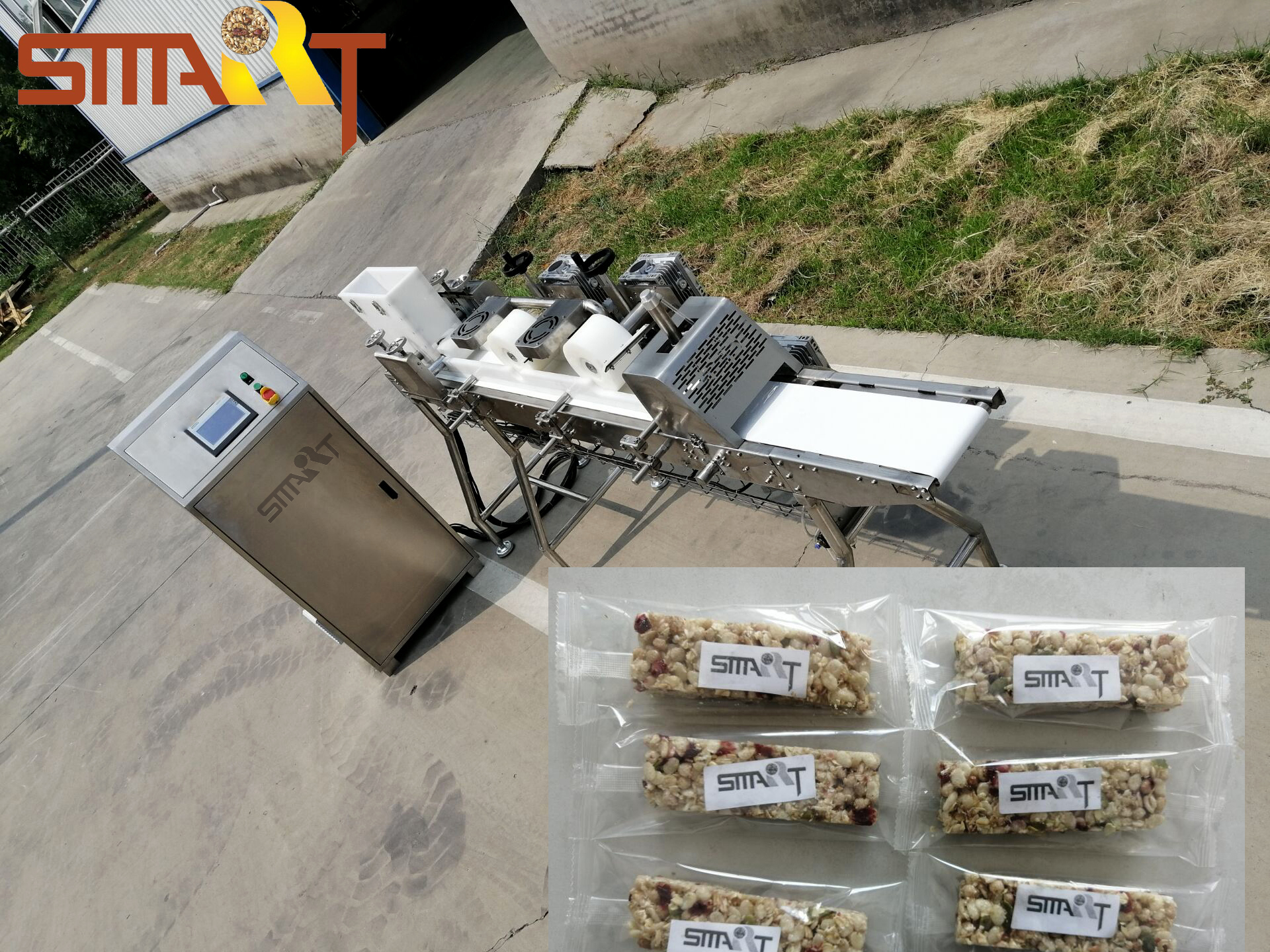 A wide range of grains can be used as raw materials, like rice, oats, pop snack, granola, nuts, raisins, nuts etc. The bar size is adjustable.